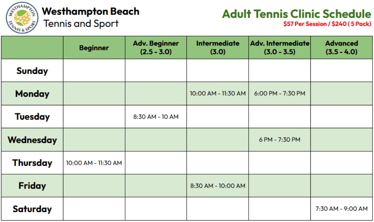 1.5 hour session of instruction, drilling, and match-play. 4-6 players per clinic